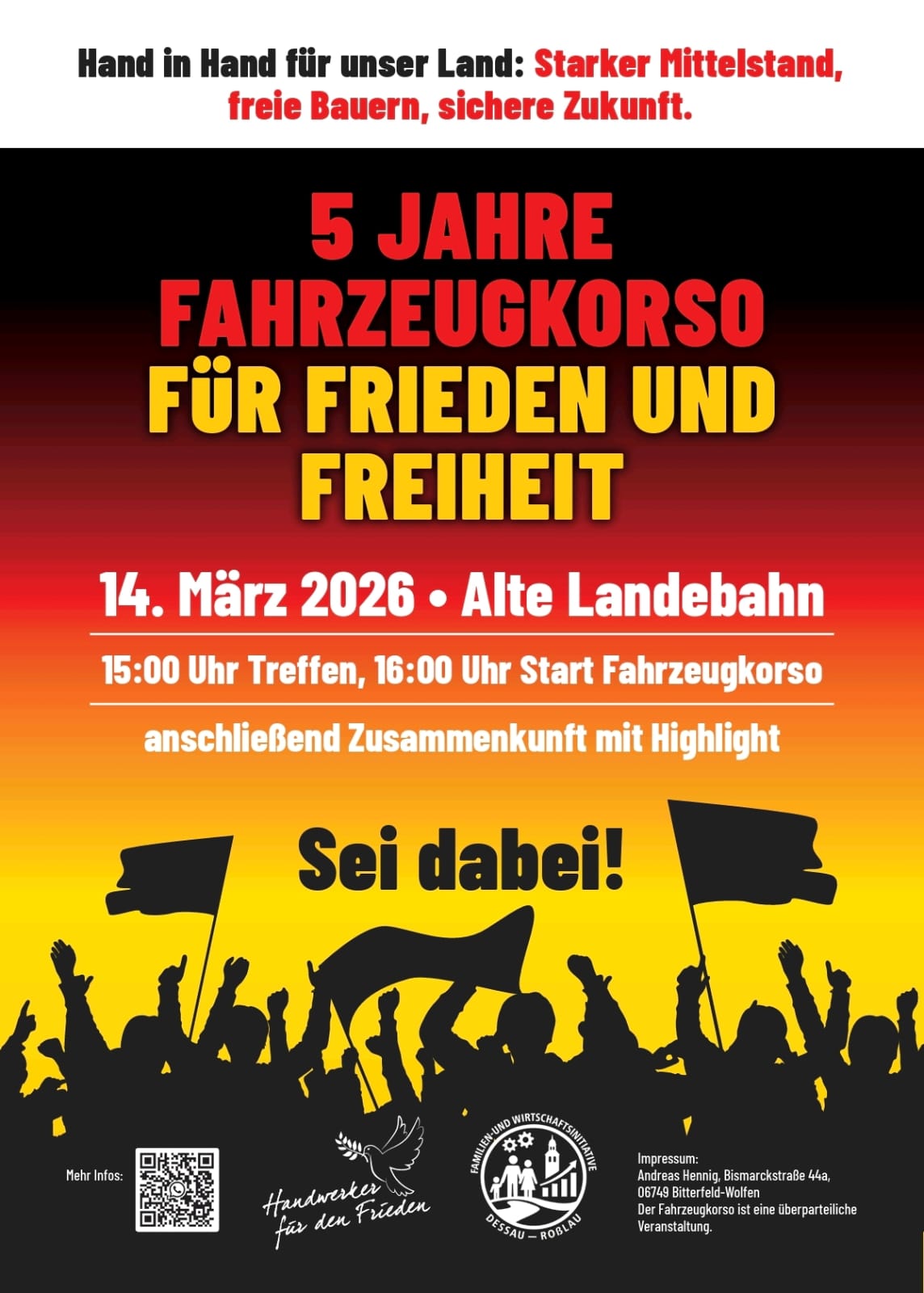 Wir werden weiter für etwas geradestehen, was die „Handwerker für den Frieden“ auf vielen Kundgebungen in Deutschland immer wieder vertreten. Dieser Verantwortung stellen wir uns aus der Mitte der Gesellschaft heraus.